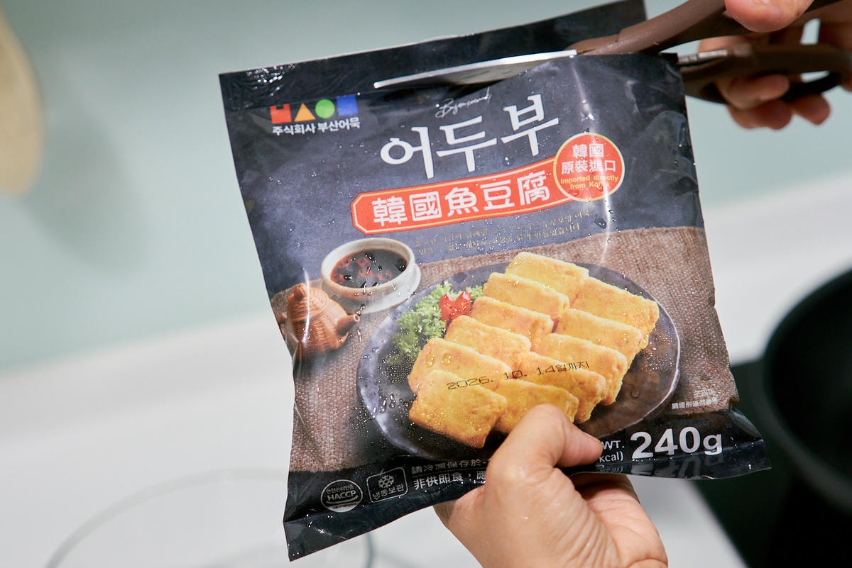 最後這是我的心頭好,釜山魚板公司出品這個魚豆腐真的超級好吃!一片接一片、三兩下秒殺等級的美味!而魚豆腐雖然名字為豆腐,但不是黃豆製而是用魚肉打成漿製成的魚板豆腐,紮實不會碎,最適合用來煎、炸、煮湯!