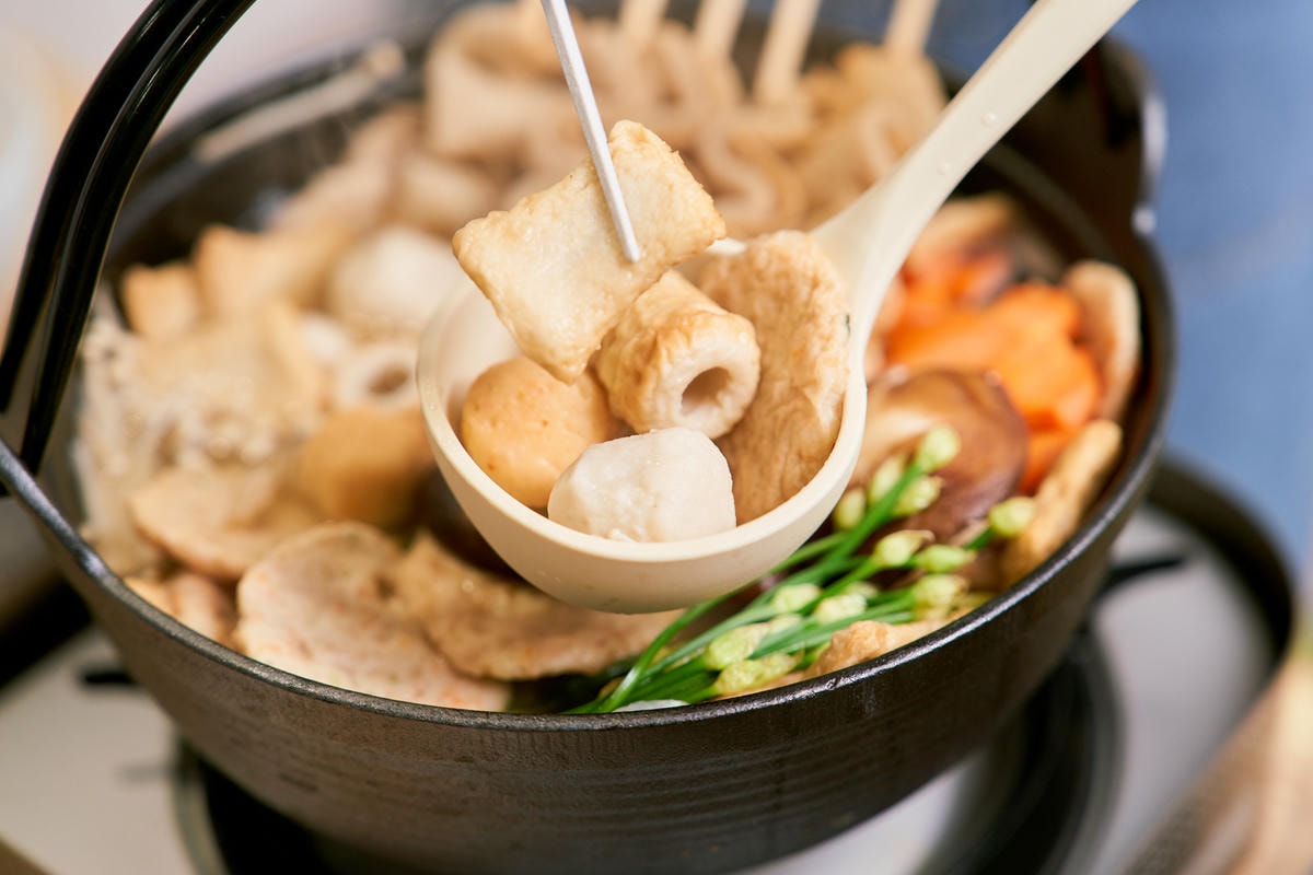 - 高湯中加入韓國水協 綜合魚板、韓國水協 四角魚板串一起煮5分鐘