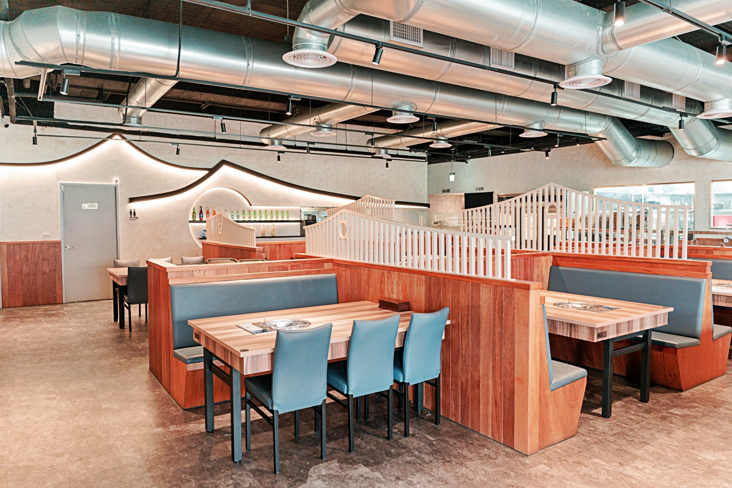 我個人很愛「水赤床韓式烤肉崇德店」的韓屋外觀,還連韓屋特有的瓦礫屋簷與涼亭整個原封不動搬到台中,遠遠就能看見!而進到室內又是另一種風貌,整個很韓風的流線設計,與高雄店的清水風,有著截然不同的樣貌!
