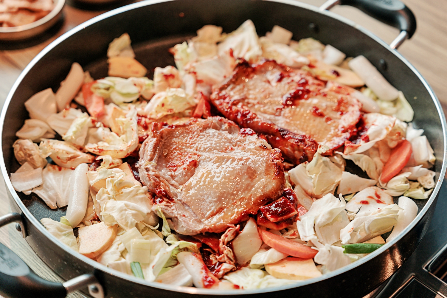 這次回訪「水赤床韓式烤肉崇德店」最期待毫無疑問就是 辣炒春川雞。因為這道是我2011年第一次去韓國時,人生中的第一道韓式料理!雖然後來才知道這道料理對韓國人很家常、甚至在家就能做!但當時那份被醬汁香味包圍、鐵板上熱氣不斷翻滾的美味驚艷,讓我到現在都還記得非常清楚。所以這次帶著尋找「記憶中美味」的高標準來驗收(笑)!
