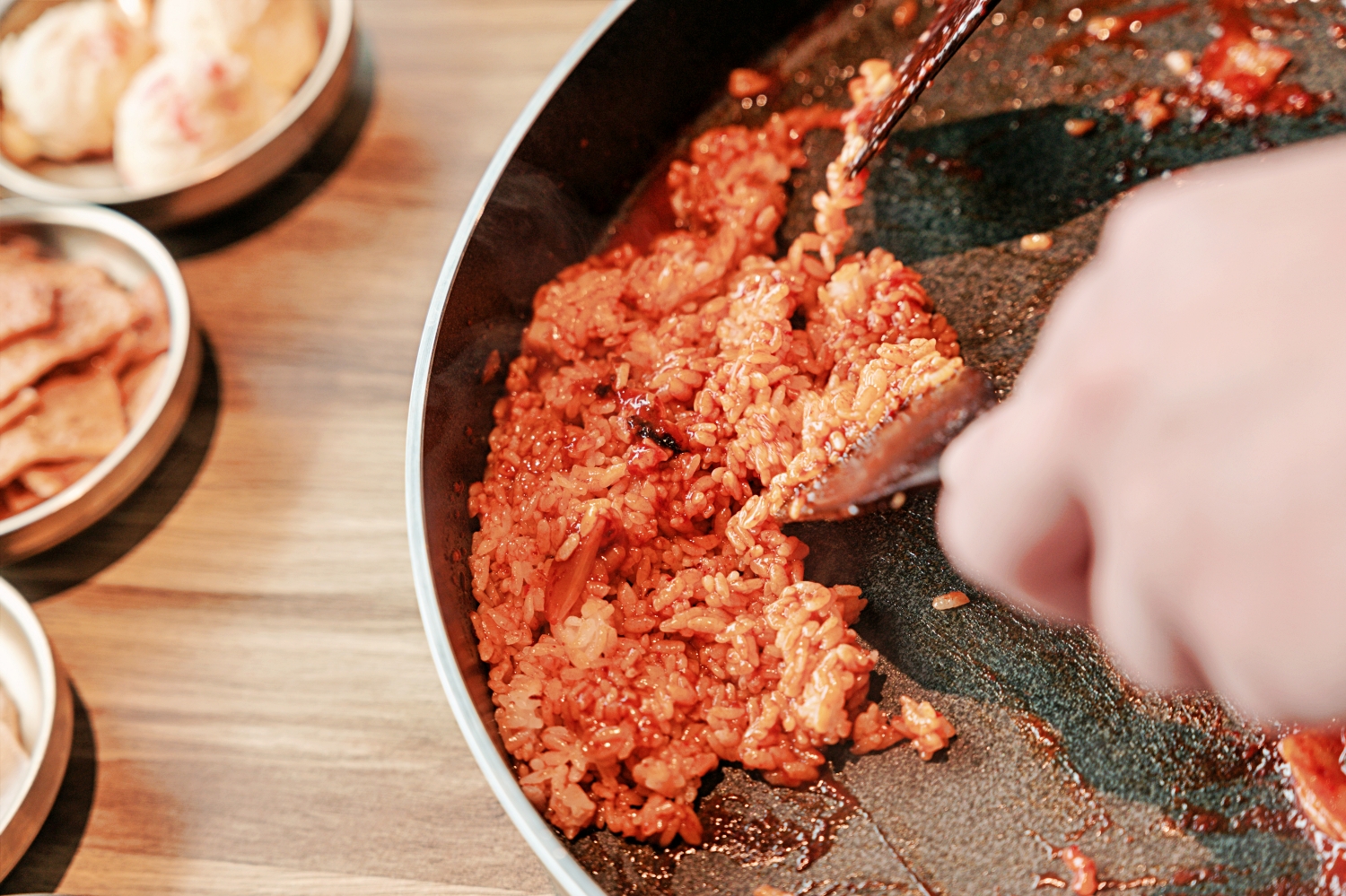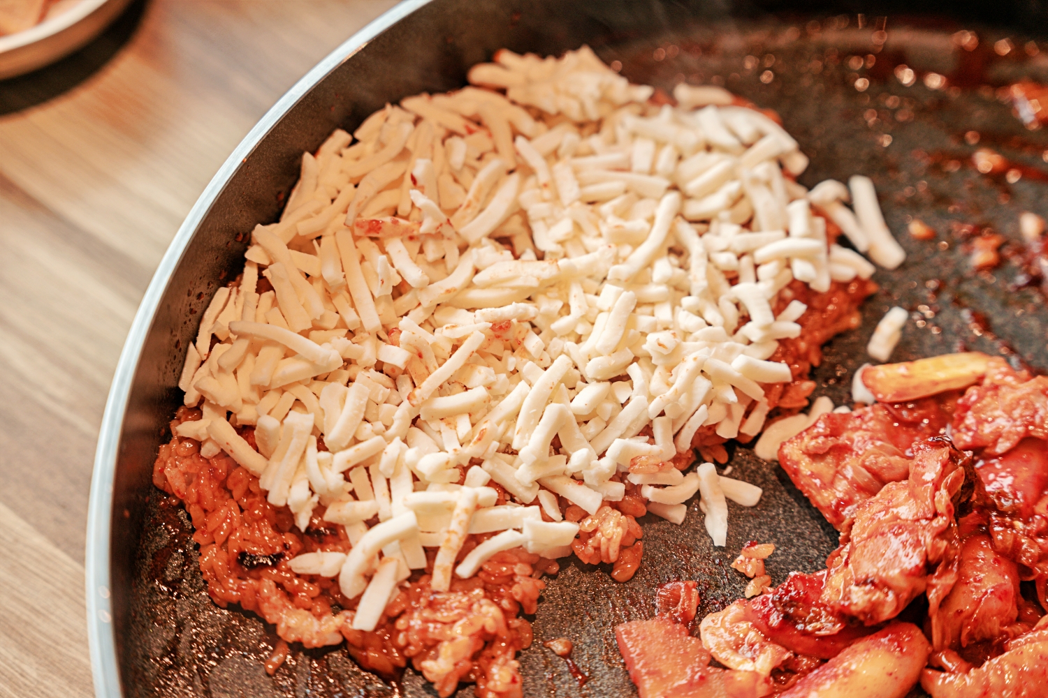 對了!我真心建議一定要加點「拌飯」。等到鐵板上的醬汁慢慢收乾成濃縮精華,再把白飯倒下去拌炒,最後鋪上一層起司,讓起司融化後和醬汁一起黏在每一粒飯上,這真的是經典中的經典,是吃春川雞絕對不能錯過的靈魂吃法。