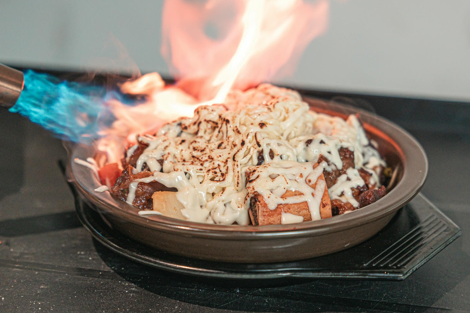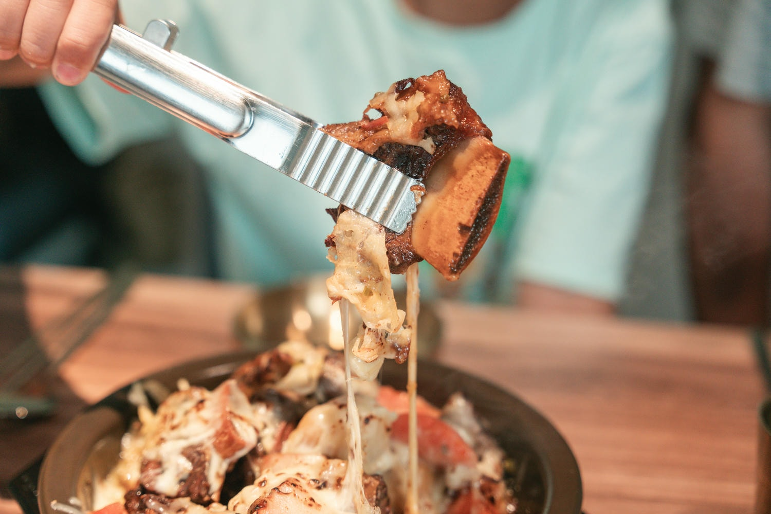 這麼麻煩的過程,能在「水赤床韓式烤肉崇德店」直接吃到簡直太高興,變成了每次都必點的一道!而且他們的還是升級版,上面一層濃濃起,經過現場炙燒後香味、加上牽絲的賣相,告訴大家,絕對會一個接一個停不了!芒果自己就能啃掉半盤以上!!